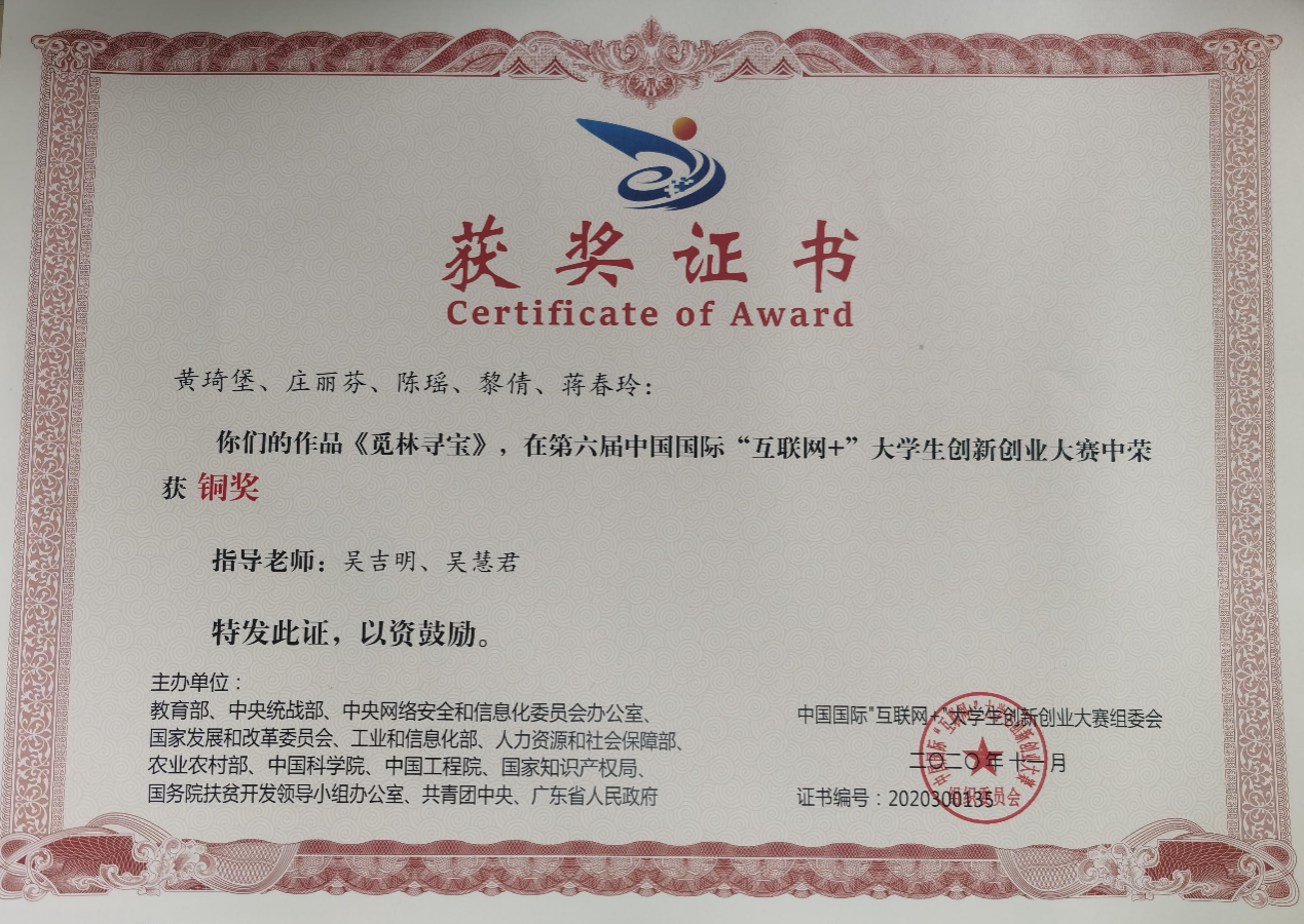 第六屆中國(guó)國(guó)際“互聯(lián)網(wǎng)+”大學(xué)生創(chuàng)新創(chuàng)業(yè)大賽銅獎(jiǎng)