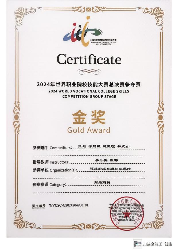 重視雙創(chuàng)教育和學(xué)生技能競(jìng)賽,累計(jì)獲得全國(guó)“互聯(lián)網(wǎng)+”大學(xué)生創(chuàng)新創(chuàng)業(yè)大賽銅獎(jiǎng)1項(xiàng),“挑戰(zhàn)杯”中國(guó)大學(xué)生創(chuàng)業(yè)計(jì)劃競(jìng)賽國(guó)賽銀獎(jiǎng)1項(xiàng),福建省“互聯(lián)網(wǎng)+”大學(xué)生創(chuàng)新創(chuàng)業(yè)大賽金獎(jiǎng)1項(xiàng)、銀獎(jiǎng)4項(xiàng)、銅獎(jiǎng)4項(xiàng),“互聯(lián)網(wǎng)+交通”全國(guó)職業(yè)院校大學(xué)生創(chuàng)新創(chuàng)業(yè)大賽銅獎(jiǎng)1項(xiàng),福建省青年創(chuàng)新創(chuàng)業(yè)大賽二等獎(jiǎng)1項(xiàng),挑戰(zhàn)杯創(chuàng)新創(chuàng)業(yè)省賽金獎(jiǎng)1項(xiàng)、銅獎(jiǎng)1項(xiàng)。在職業(yè)院校技能大賽中,互聯(lián)網(wǎng)+國(guó)際經(jīng)濟(jì)與貿(mào)易、關(guān)務(wù)實(shí)務(wù)、智慧物流、會(huì)計(jì)實(shí)務(wù)、市場(chǎng)營(yíng)銷、貨運(yùn)代理、直播電商、企業(yè)經(jīng)營(yíng)沙盤模擬、業(yè)財(cái)稅融合大數(shù)據(jù)應(yīng)用、智能財(cái)稅、電子商務(wù)及創(chuàng)新創(chuàng)業(yè)等賽項(xiàng)累計(jì)獲得國(guó)家級(jí)一等獎(jiǎng)2次、二等獎(jiǎng)4次、三等獎(jiǎng)15次,省級(jí)一等獎(jiǎng)58次。在世界職業(yè)院校技能大賽爭(zhēng)奪賽中,累計(jì)獲得金獎(jiǎng)2項(xiàng)、銅獎(jiǎng)3項(xiàng)、優(yōu)秀獎(jiǎng)1項(xiàng)。
