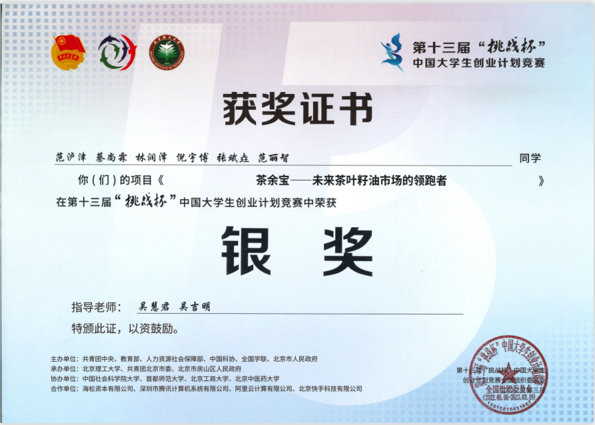 第十三屆“挑戰(zhàn)杯”中國(guó)大學(xué)生創(chuàng)業(yè)計(jì)劃競(jìng)賽國(guó)賽銀獎(jiǎng)