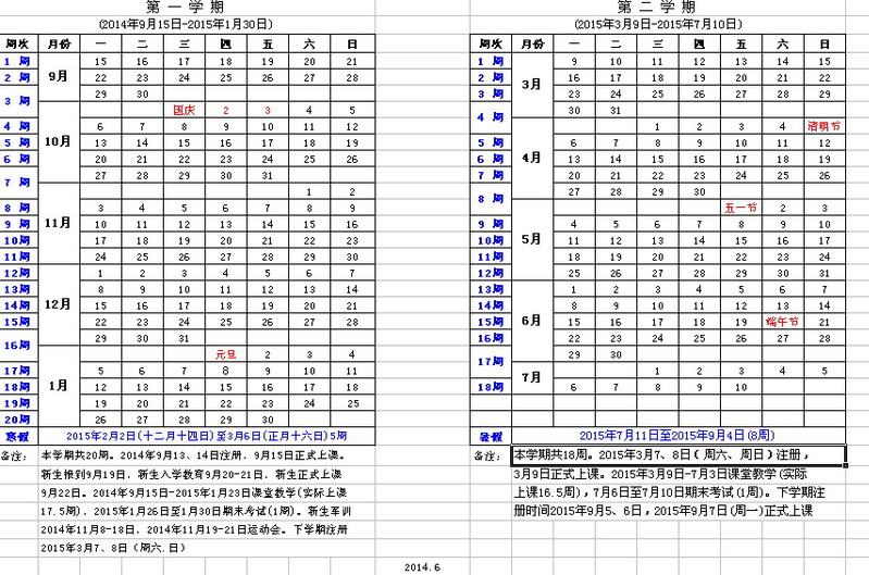 2014-2015學(xué)年教學(xué)周歷
