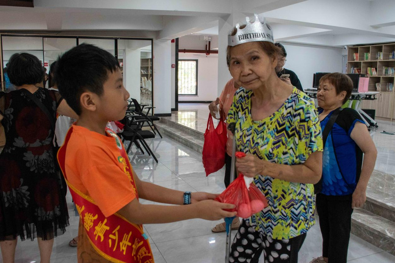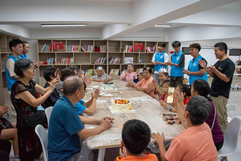 隨后,志愿者們推上精心定制的生日蛋糕,點燃蠟燭,全場齊聲高唱《生日快樂歌》。燭光搖曳中,老人們閉眼許愿,臉上洋溢著幸福的笑容。志愿者們細心地為每位老人切好蛋糕,遞上叉子,陪伴他們一同品嘗甜蜜。