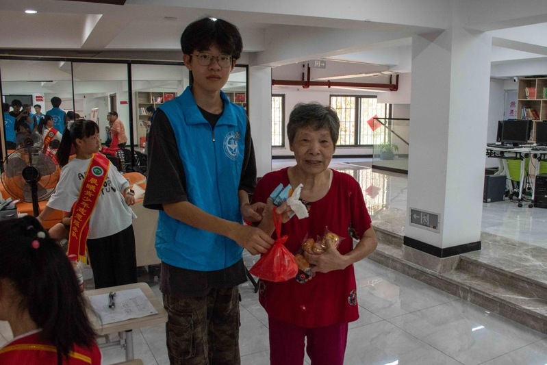 活動接近尾聲,志愿者們將愛心禮物一一送到老人手中。禮物雖不貴重,卻飽含心意。學(xué)生們俯身與老人交談,傾聽他們的故事,擁抱告別。