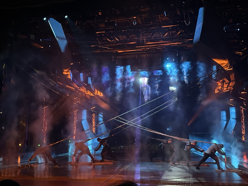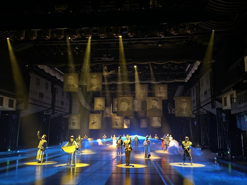 《最憶船政》以百年船政發(fā)展史為敘事核心,依托老廠房獨特空間優(yōu)勢,打造出科技感十足的折疊劇場。在約70分鐘的演出中,可移動的觀眾席化身為“時光之船”,載著黨員教師們沉浸式穿梭于各個歷史場景:船政學(xué)堂里的朗朗書聲、萬年青號軍艦下水的震撼瞬間、甲午海戰(zhàn)的悲壯征程……聲光電技術(shù)與演員的真情演繹相互交織,讓塵封的歷史變得鮮活可感,生動再現(xiàn)了船政先輩們實業(yè)救國、向海圖強的壯志豪情。