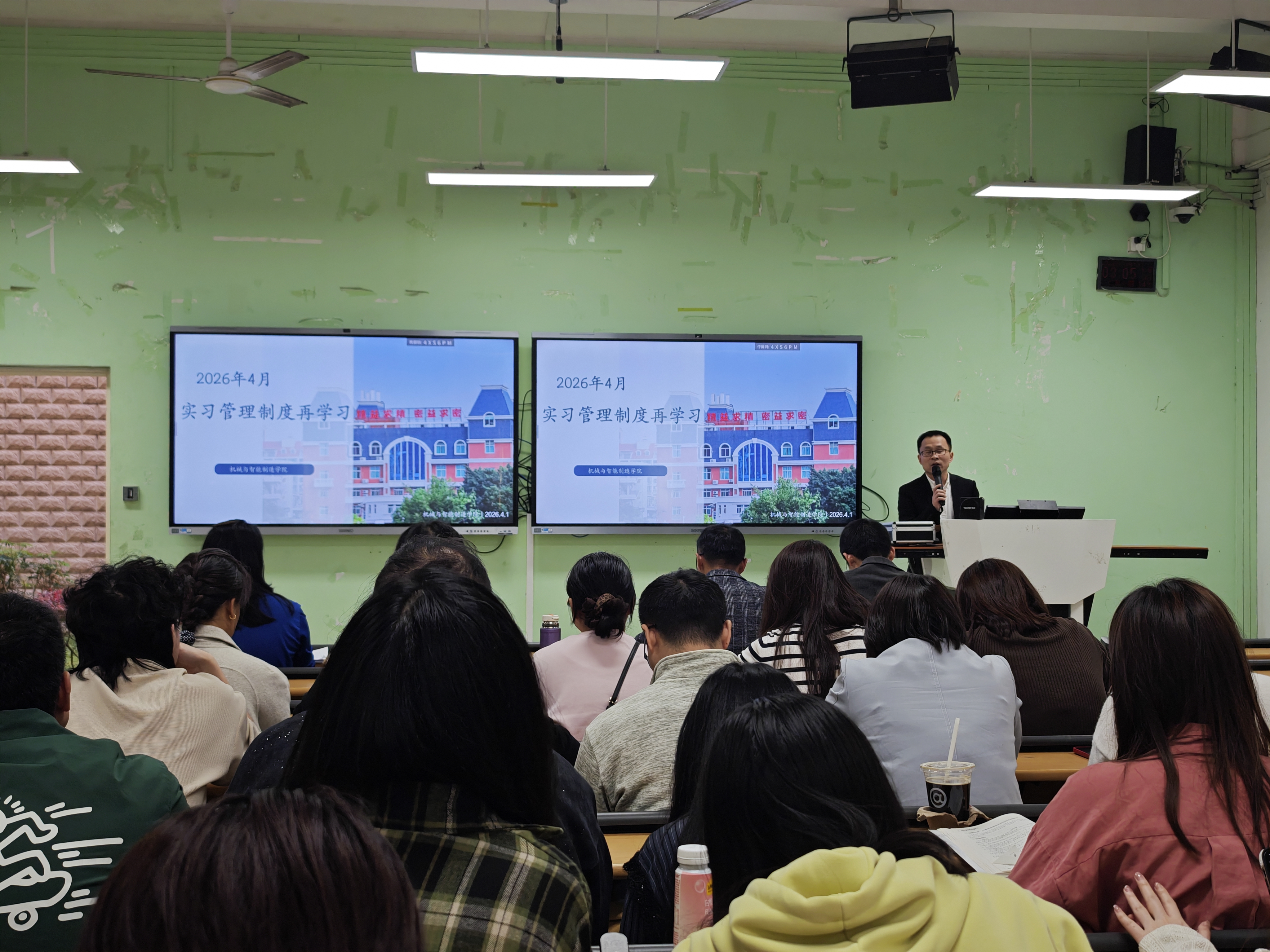 曾思通副院長(zhǎng)首先領(lǐng)學(xué)了《職業(yè)學(xué)校學(xué)生實(shí)習(xí)管理規(guī)定》等文件,并就進(jìn)一步規(guī)范和加強(qiáng)我院畢業(yè)生崗位實(shí)習(xí)指導(dǎo)和管理作具體工作部署。楊開懷院長(zhǎng)圍繞《規(guī)定》中實(shí)習(xí)組織、實(shí)習(xí)管理、安全職責(zé)、權(quán)益保障等核心內(nèi)容,聚焦實(shí)習(xí)底線紅線,通過政策解讀、案例剖析,對(duì)三方實(shí)習(xí)協(xié)議簽訂、實(shí)習(xí)崗位規(guī)范、學(xué)生權(quán)益保護(hù)、實(shí)習(xí)過程監(jiān)管等重點(diǎn)條款進(jìn)行細(xì)致講解,并結(jié)合學(xué)院實(shí)習(xí)工作實(shí)際,明確實(shí)習(xí)管理工作要求,細(xì)化實(shí)習(xí)全流程管控措施,強(qiáng)調(diào)要堅(jiān)守實(shí)習(xí)育人初心,杜絕違規(guī)實(shí)習(xí)、有償實(shí)習(xí)等行為,切實(shí)保障學(xué)生實(shí)習(xí)期間的人身安全、人格尊嚴(yán)和合法權(quán)益。