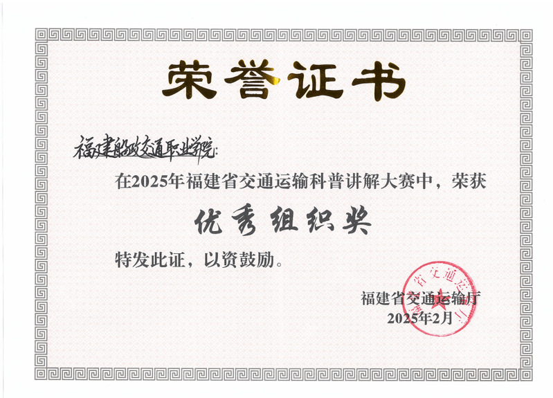 通過(guò)此次參加福建省交通運(yùn)輸科普講解大賽,不僅展示了我校教師在交通運(yùn)輸領(lǐng)域的專業(yè)素養(yǎng)和科普能力,也增進(jìn)了我校與行業(yè)間的溝通和交流。未來(lái),我校將持續(xù)加強(qiáng)科普工作,培養(yǎng)更多優(yōu)秀的科普人才,為推動(dòng)交通運(yùn)輸科學(xué)知識(shí)的普及和傳播貢獻(xiàn)力量。