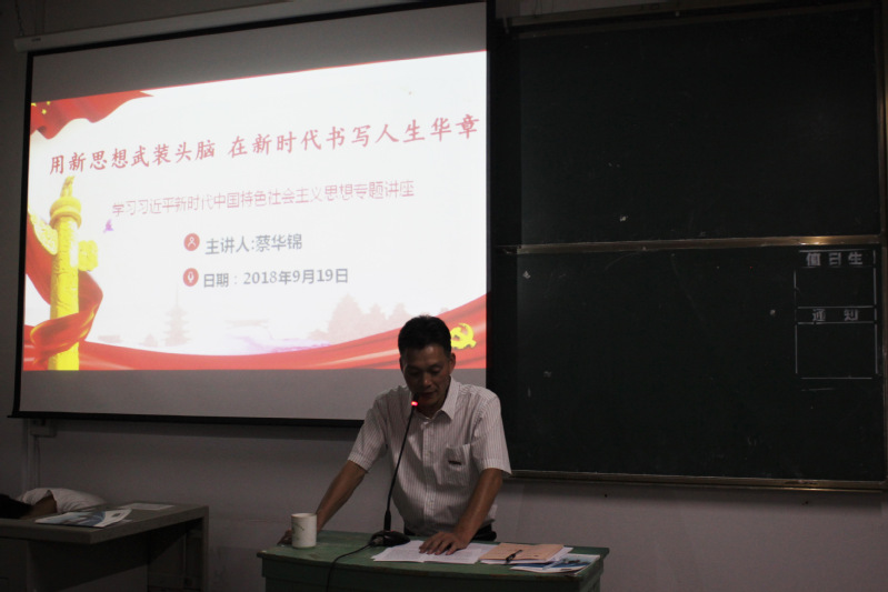 2018年9月19日,在福建船政交通職業(yè)學(xué)院北區(qū)22號(hào)樓407教室舉行了“用新思想武裝頭腦 在新時(shí)代書(shū)寫(xiě)人生華章”的專(zhuān)題講座。參加報(bào)告的有汽車(chē)系教工黨員代表、18級(jí)各班臨時(shí)負(fù)責(zé)人以及優(yōu)秀學(xué)生代表。報(bào)告由汽車(chē)運(yùn)用工程系黨總支書(shū)記蔡華錦主持。