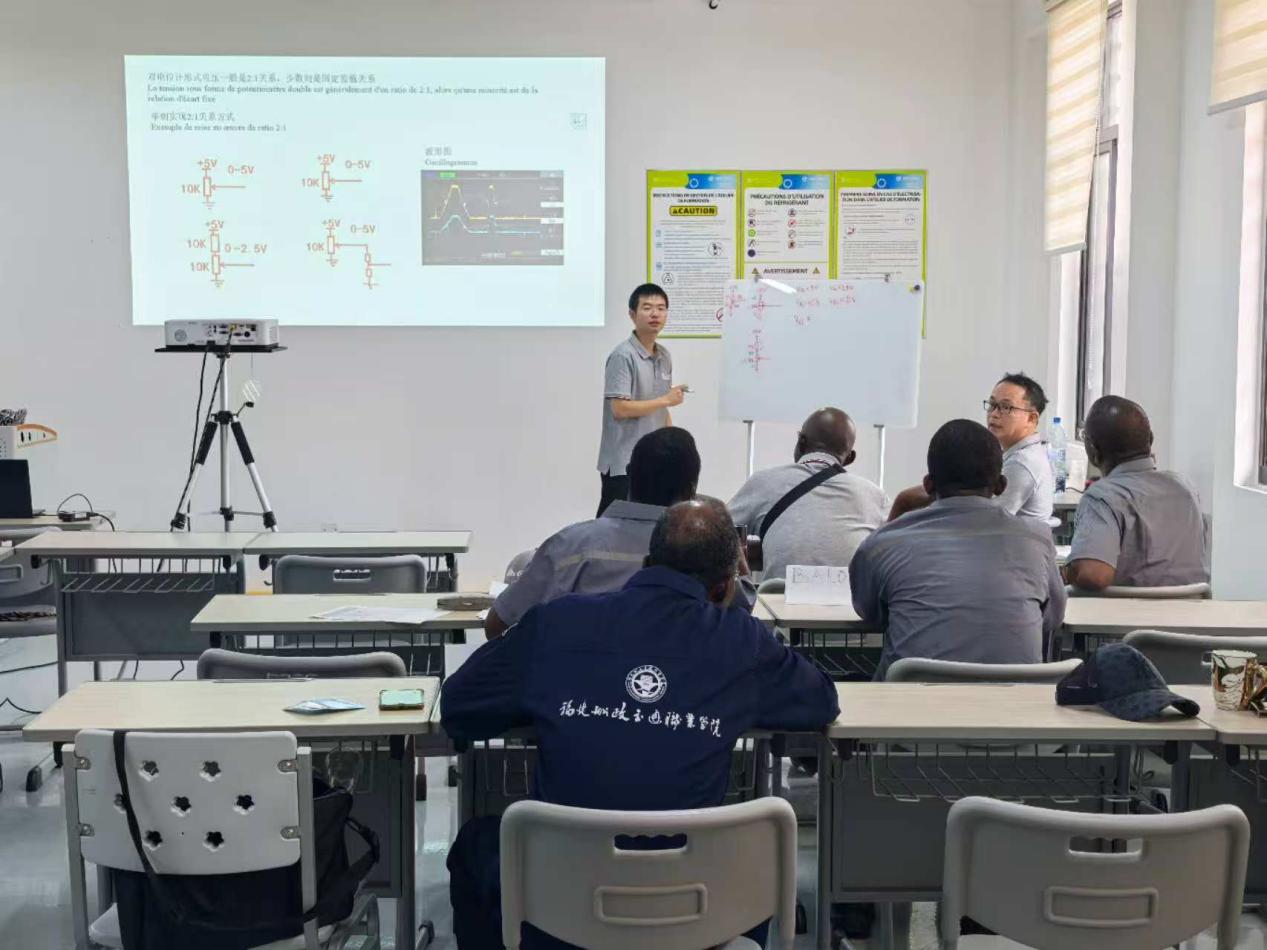 2023年9月至2024年1月,學(xué)院已出色完成中航科創(chuàng)成套公司(以下簡稱“中航成套”)科特迪瓦職教項(xiàng)目汽修專業(yè)在國內(nèi)為期4個(gè)月的師資培訓(xùn)。2025年6至10月,我院教師團(tuán)隊(duì)再次揚(yáng)帆啟航、跨越萬里,遠(yuǎn)赴科特迪瓦首都阿比讓ABOBO校區(qū),輸送“船政模式”職業(yè)教育品牌,圓滿完成了中航成套為期4個(gè)月的科特迪瓦職教項(xiàng)目汽車維修專業(yè)海外師資培訓(xùn)。我院精心選派了梁霖鋒、張光葳和陳星三位既精通汽車前沿技術(shù)又富有教學(xué)經(jīng)驗(yàn)的骨干教師,組成專家團(tuán)隊(duì)“送教上門”,培訓(xùn)面向科特迪瓦當(dāng)?shù)囟嗨殬I(yè)院校的14名教師,團(tuán)隊(duì)克服當(dāng)?shù)貤l件限制,遇山開路、遇水架橋,創(chuàng)造性地采用了“培訓(xùn)+調(diào)研+標(biāo)準(zhǔn)開發(fā)”的融合式方法,確保了培訓(xùn)的高質(zhì)量與實(shí)用性??铺氐贤邍易畲蟮慕逃襟wJDMag刊發(fā)結(jié)業(yè)典禮報(bào)道,對(duì)專家團(tuán)隊(duì)精湛的專業(yè)技能和無私的奉獻(xiàn)精神給予了高度贊譽(yù)。