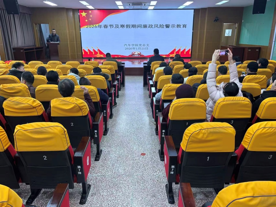 2026年1月21日,汽車學(xué)院在行政樓六樓學(xué)術(shù)報(bào)告廳召開全體教職工大會(huì),學(xué)院黨政領(lǐng)導(dǎo)及全體教職工全員參會(huì)。