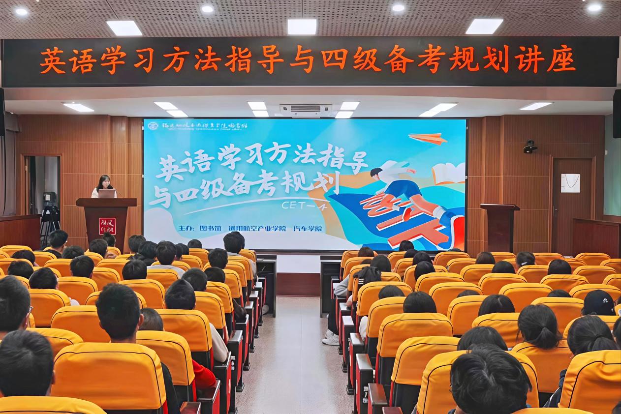 近日,圖書館聯(lián)合通用航空產(chǎn)業(yè)學(xué)院、汽車學(xué)院在1號樓學(xué)術(shù)報告廳舉辦《英語學(xué)習(xí)方法指導(dǎo)和四級備考規(guī)劃》專題講座,300余名大一新生現(xiàn)場聆聽,共同解鎖英語高效學(xué)習(xí)密碼。