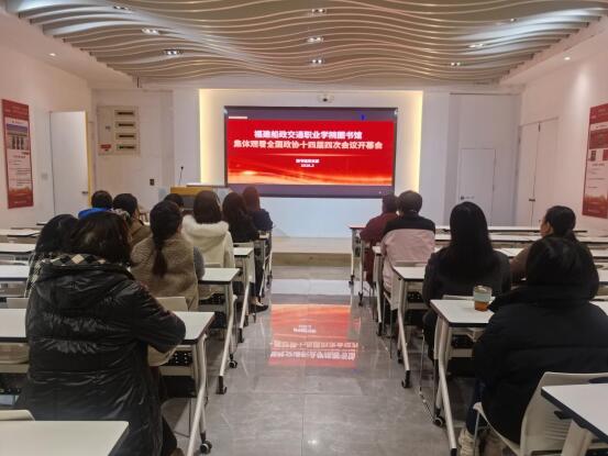 3月5日,福建船政交通職業(yè)學院圖書館黨支部組織全體館員在圖書館三樓黨建館集中觀看全國政協(xié)十四屆四次會議開幕會,深入學習領(lǐng)會全國兩會精神。