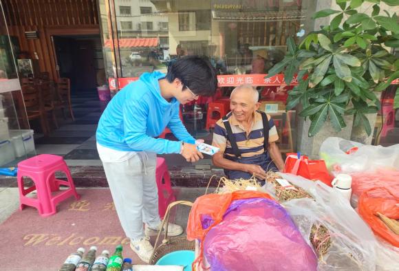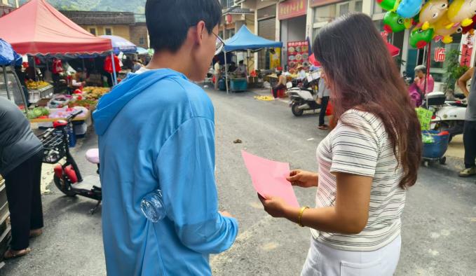 南靖縣社會(huì)服務(wù)踐行團(tuán)抓住圩日人潮,清晨即在縣城中心集市搭起“防詐驛站”。踐行團(tuán)成員身著藍(lán)色制服,用閩南語、普通話雙語講解“保健品”“養(yǎng)老理財(cái)”“刷單返利”等最新騙局;同時(shí)發(fā)放傳單,把警示送進(jìn)菜籃,以身邊事警醒身邊人。針對(duì)老厝木梁密、線路舊,踐行團(tuán)也進(jìn)行消防安全提醒,示范高功率電器限時(shí)使用、插排不串接,演示油鍋起火蓋鍋蓋、森林防火“十不準(zhǔn)”,共筑鄉(xiāng)村防火安全防線。
