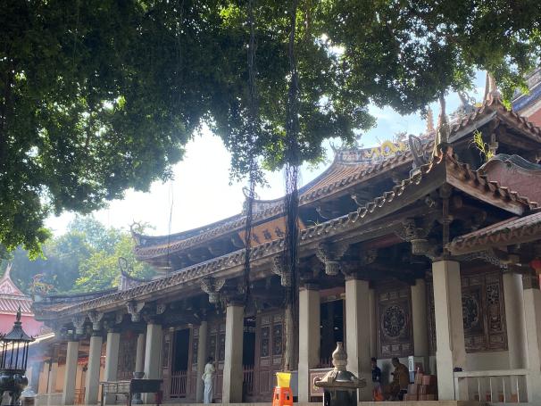 “E芯人·閩藝遺韻”中華文脈傳承團步履不停,奔赴泉州少林寺,在歷史遺存中深掘閩地文脈。古寺內(nèi),榕蔭如蓋,紅墻黛瓦間,傳承團駐足凝視斗拱上的精美雕飾,指尖輕觸歷經(jīng)歲月摩挲的木柱,細聽檐角銅鈴隨風搖曳的韻律,于一榫一卯中感知閩南傳統(tǒng)營造技藝的精湛;移步至少林牌坊前,傳承團肅立仰望“少林勝蹟”匾額,撫摸石碑上的斑駁刻痕,當年輕的眼眸望見歷史的褶皺,當溫熱的指尖觸碰歲月的肌理,中華文脈傳承不再是遙遠的符號,而是青春輩接過的使命火炬。