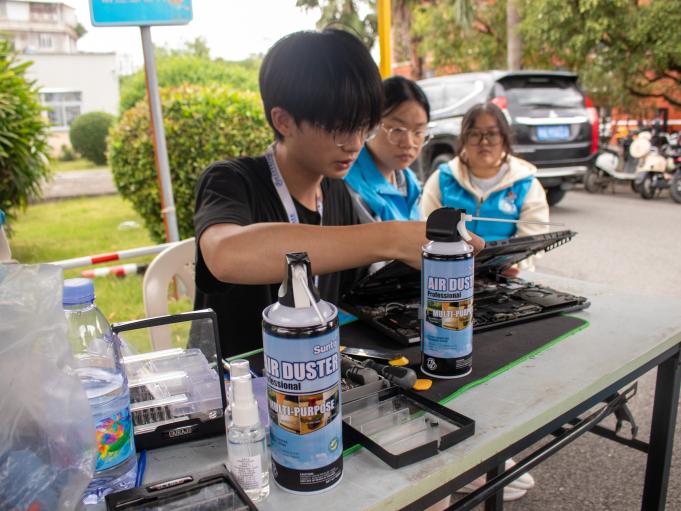 在志愿服務(wù)的現(xiàn)場(chǎng),志愿者們憑借其精湛的技藝和周到的服務(wù)精神,為師生們提供了電腦風(fēng)扇的細(xì)致清灰以及屏幕的專業(yè)清潔服務(wù)。此外,志愿者們還向師生們傳播了關(guān)于電腦日常護(hù)理與保養(yǎng)的寶貴知識(shí),提醒大家在使用電腦的過程中需注意防塵和散熱的重要性,防止因灰塵積聚而引發(fā)的電腦故障問題。