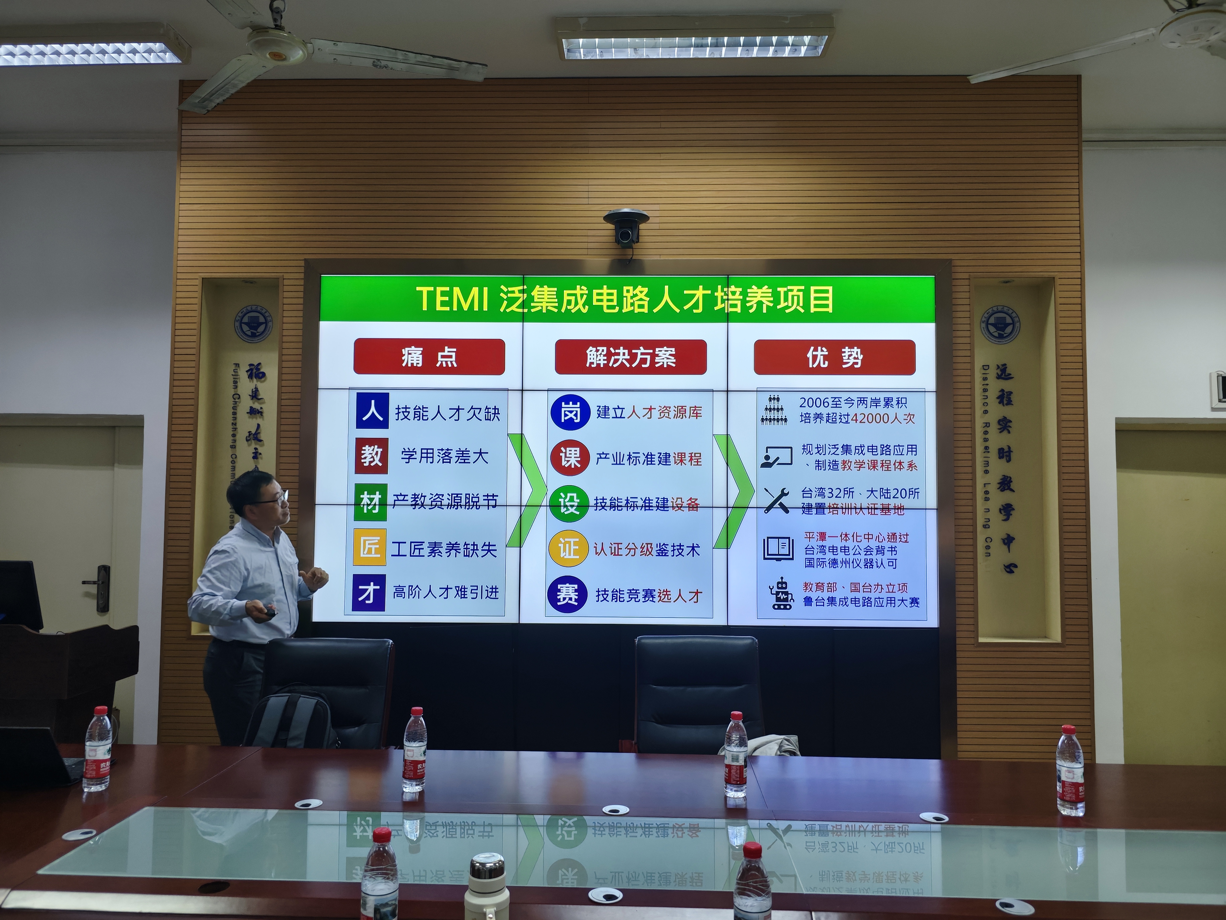 交流中,陳宏昇博士圍繞泛集成電路產業(yè)發(fā)展現狀、人才需求痛點及產教融合創(chuàng)新路徑展開分享。他深入剖析了當前行業(yè)“技能人才欠缺、學用落差大、產教資源脫節(jié)”等核心問題,重點介紹了TEMI五合一芯質生產力人才培養(yǎng)模式。并結合寧波大學科技學院、山東信息職業(yè)技術學院等成功案例,詳細解讀了“政府+產業(yè)園+院校”的多元合作模式,以及電子組件拆焊、電路板設計、單片機程序設計等核心課程的實踐教學體系。