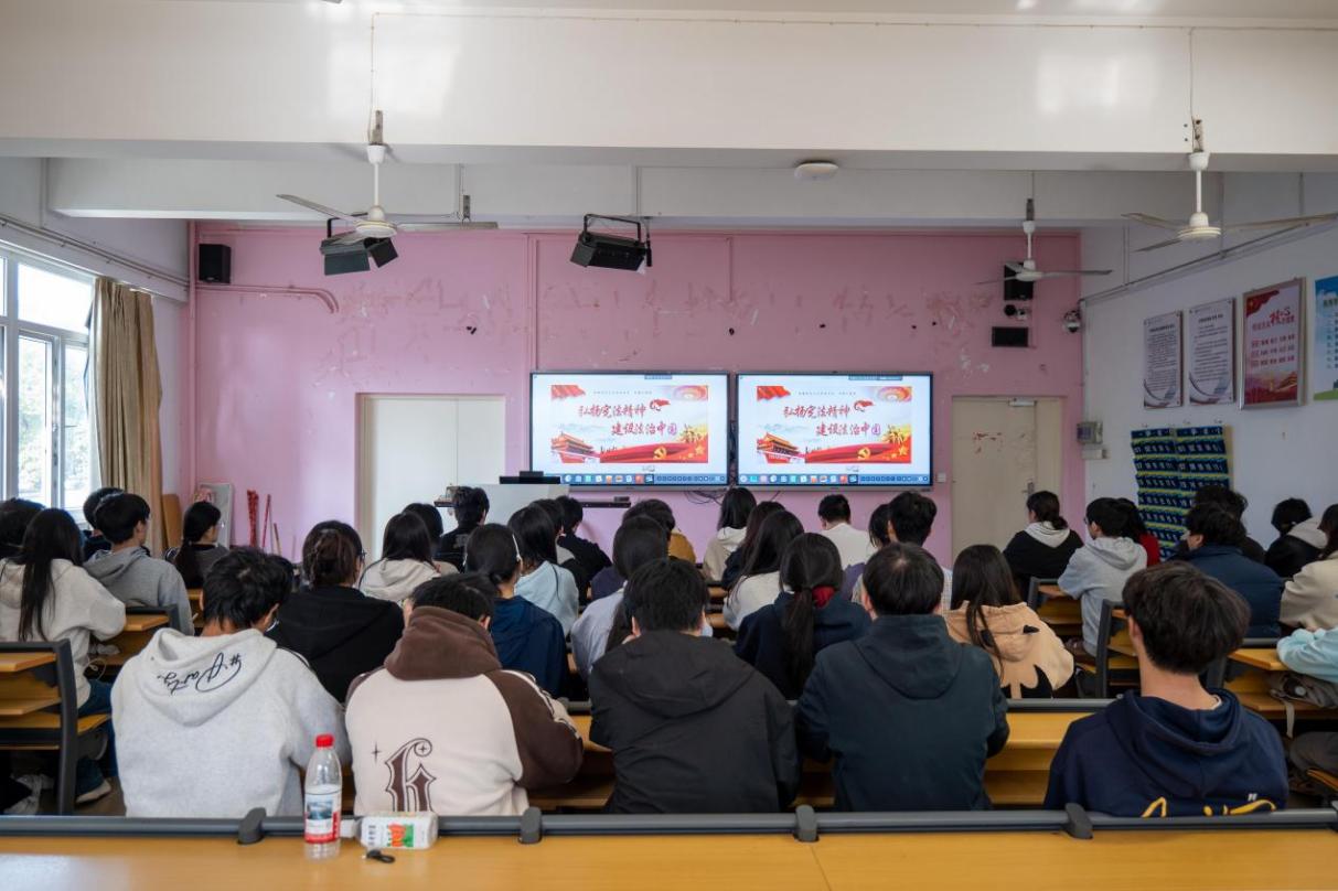 活動以憲法紀(jì)錄片觀影拉開序幕。影片通過生動鮮活的案例、深入淺出的解讀,從憲法的起源發(fā)展、核心內(nèi)容與精神實(shí)質(zhì),到憲法與公民生活的緊密關(guān)聯(lián)、對青年成長的指引意義,全方位展現(xiàn)了憲法作為國家根本大法的莊嚴(yán)與溫度。從出生時的權(quán)利保障到求學(xué)路上的公平機(jī)遇,從勞動就業(yè)的合法權(quán)益到社會生活的秩序規(guī)范,憲法的身影貫穿人生每一個重要階段,讓同學(xué)們深刻領(lǐng)悟“憲法不是遙遠(yuǎn)的文本,而是與我們息息相關(guān)的行為準(zhǔn)則”,真切體會到憲法既是治國安邦的總章程,也是守護(hù)青年成長、護(hù)航人生旅程的堅實(shí)依靠。