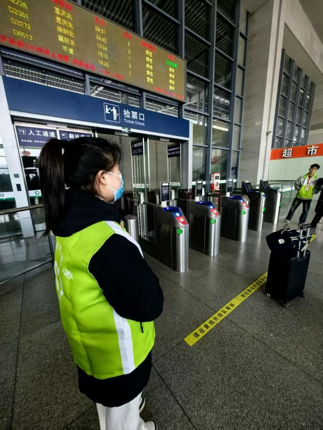 服務(wù)過程中,同學(xué)們值守游客服務(wù)咨詢點與檢票通道,為旅客解答線上購票、班次調(diào)度等問題,主動幫扶攜帶大件行李的旅客,為老人、兒童等特殊群體開辟綠色通道。面對旅客在自助檢票機前的困惑,同學(xué)們細(xì)致演示操作流程;客流高峰時,沉穩(wěn)維持現(xiàn)場秩序,引導(dǎo)人流有序分流,確保通道暢通。