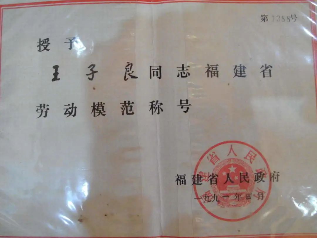 榮獲福建省勞動模范