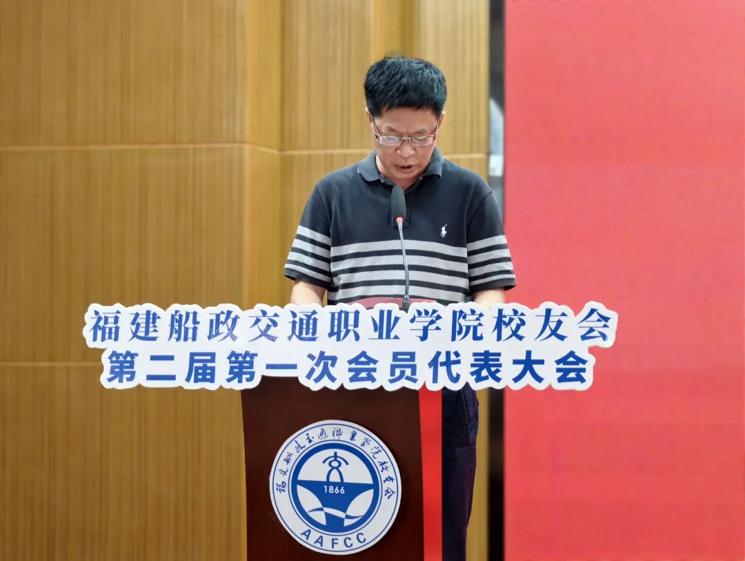 福建船政交通職業(yè)學(xué)院第一屆校友會副會長、福建省船政文化交流協(xié)會會長林志升宣讀了主管單位關(guān)于同意換屆的批復(fù)文件;第二屆第一次會員代表大會籌備組組長俞素平向大會報告籌備工作情況。