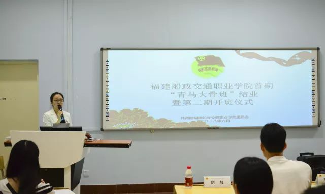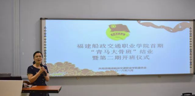 陳艷紅副院長(zhǎng)在開班儀式致辭,她說(shuō):”青馬大骨班“的學(xué)員,不僅是團(tuán)學(xué)干部,更是學(xué)院優(yōu)秀學(xué)子的典型代表。"青馬工程"的首要任務(wù),就是培養(yǎng)具有堅(jiān)定馬克思主義理想信念的青年學(xué)生,充分發(fā)揮團(tuán)員青年在學(xué)院建設(shè)發(fā)展中的生力軍和突擊隊(duì)作用。她希望第二期青馬大骨班的同學(xué)向首期優(yōu)秀學(xué)員學(xué)習(xí),在繼承中創(chuàng)新,并對(duì)第二期青馬大骨班學(xué)員提出了三點(diǎn)要求: