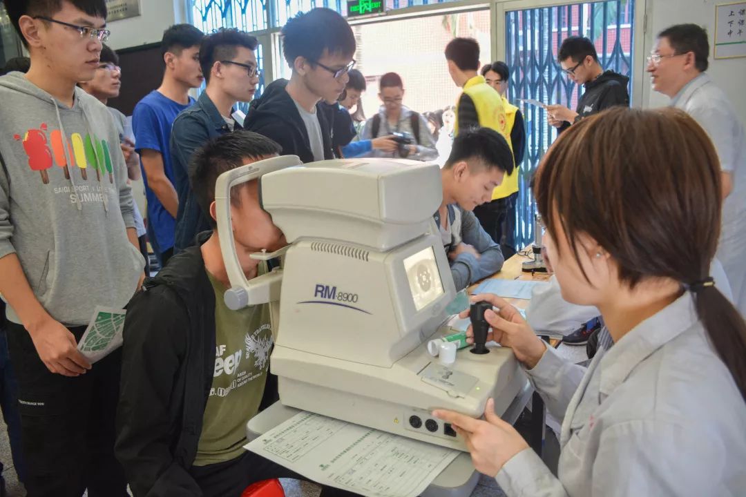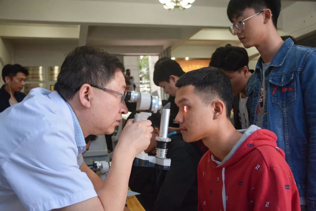 本次義診不僅有量血壓、測(cè)血型、刮痧、拔罐四項(xiàng)傳統(tǒng)義診項(xiàng)目,還另外開設(shè)了眼科保健,為同學(xué)們提供視力檢查、眼表篩查、電腦驗(yàn)光、裂隙燈檢查、清洗鏡片、眼疾咨詢、視力矯正措施、用眼保健指導(dǎo)等幫助。