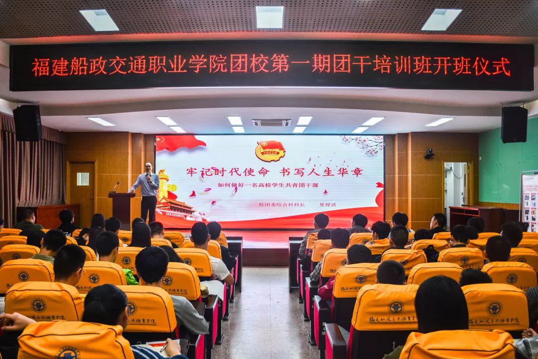 10月20日下午,福建船政交通職業(yè)學(xué)院團(tuán)校2018年第一期團(tuán)干培訓(xùn)班在1號(hào)樓6樓學(xué)術(shù)報(bào)告廳舉行開班儀式。校團(tuán)委陳慧副書記、校團(tuán)委綜合科科長夏樑波老師以及培訓(xùn)班的全體學(xué)員(來自學(xué)院2018級(jí)各團(tuán)支部的團(tuán)支部書記、團(tuán)支部副書記、組織委員以及2017級(jí)校系兩級(jí)部分學(xué)生干部)共375人參加本次開班儀式。開班儀式由校團(tuán)委學(xué)生第一副書記龔鎮(zhèn)同學(xué)主持。