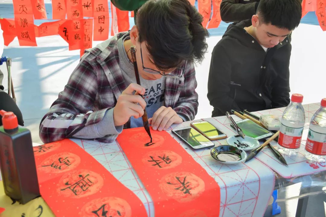 “飛揚(yáng)的紅,肆意的墨,構(gòu)成最誠(chéng)摯的愿景”。在改革開放40周年之際,也是學(xué)校152周年之際,為倡導(dǎo)“為人民謀幸福,為大眾做貢獻(xiàn)”的精神。2018年12月26號(hào)下午,校團(tuán)委船媒中心在文體中心前舉辦“‘聯(lián)’動(dòng)師生迎元春,祈簽送福滿交院”主題活動(dòng)。