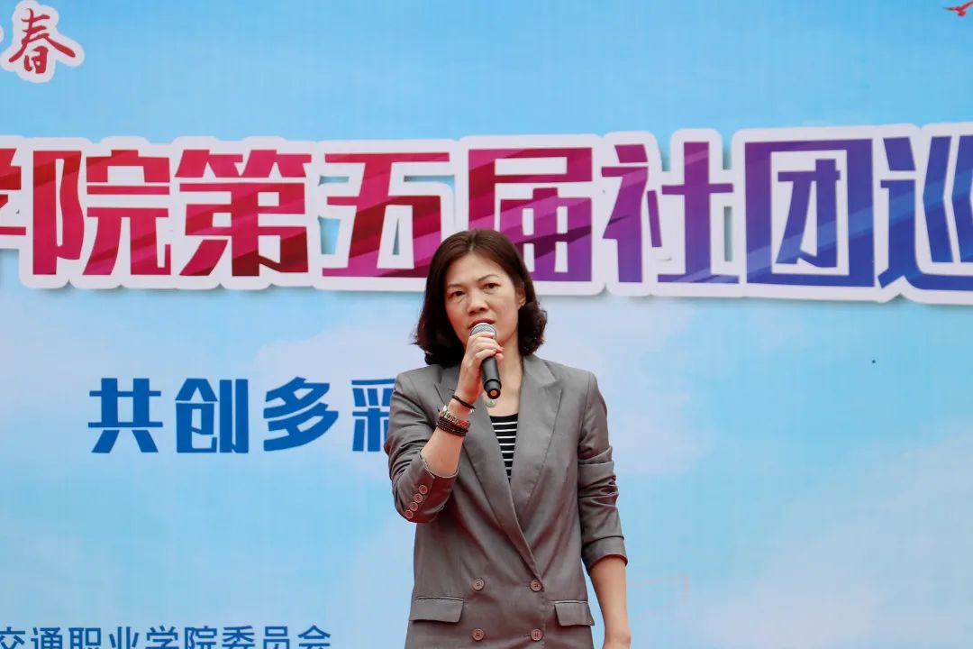 黨委學生工作部副部長鄭群英老師,宣布福建船政交通職業(yè)學院第五屆社團巡禮節(jié)正式開幕!