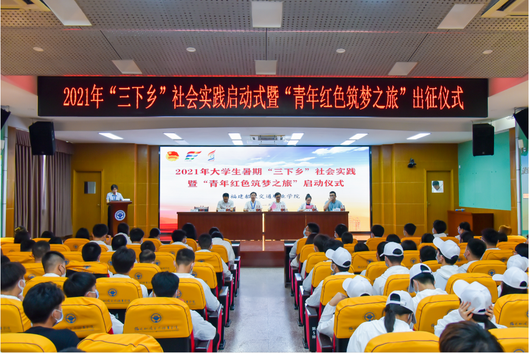 為慶祝中國共產(chǎn)黨成立100周年,落實(shí)共青團(tuán)中央《關(guān)于開展2021年全國大中專學(xué)生志愿者暑期文化科技衛(wèi)生“三下鄉(xiāng)”社會實(shí)踐活動的通知》要求,6月30日下午,福建船政交通職業(yè)學(xué)院2021年大學(xué)生暑期“三下鄉(xiāng)”社會實(shí)踐暨“青年紅色筑夢之旅”活動啟動儀式在我院北區(qū)1號樓六樓學(xué)術(shù)報(bào)告廳舉行。學(xué)院黨委副書記陳宜大,相關(guān)部門負(fù)責(zé)人,以及今年參加大學(xué)生暑期“三下鄉(xiāng)”社會實(shí)踐、青年紅色筑夢之旅的師生代表等200余人參加了本次會議。會議由學(xué)院團(tuán)委副書記梁晶主持。