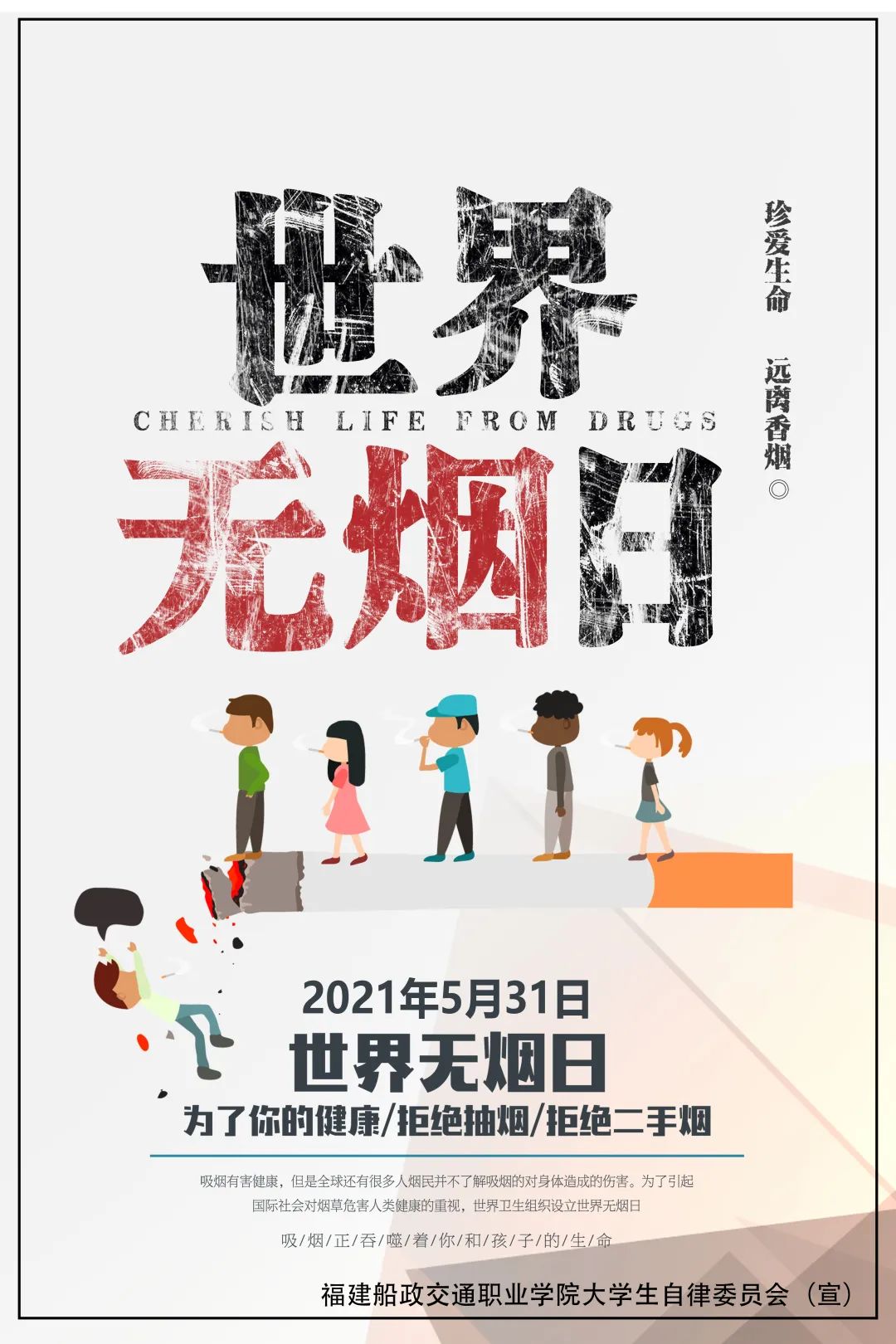 2021年6月2日,“承諾戒煙 共享無煙環(huán)境”第34個(gè)世界無煙日校園系列活動在學(xué)校北區(qū)文體中心籃球場前舉行。