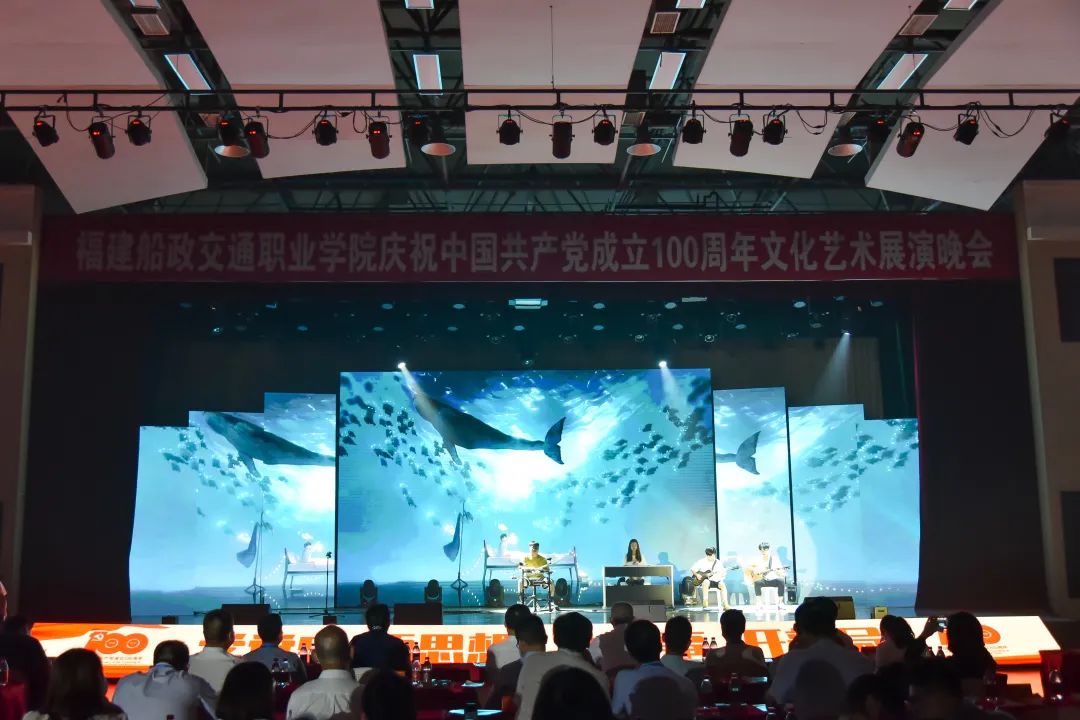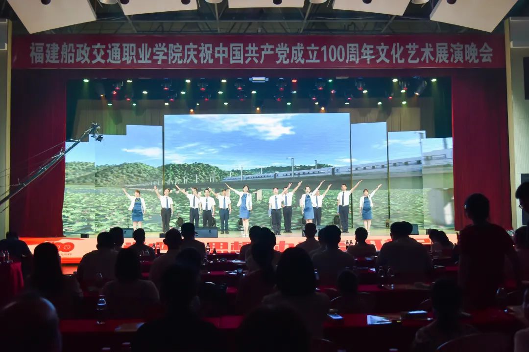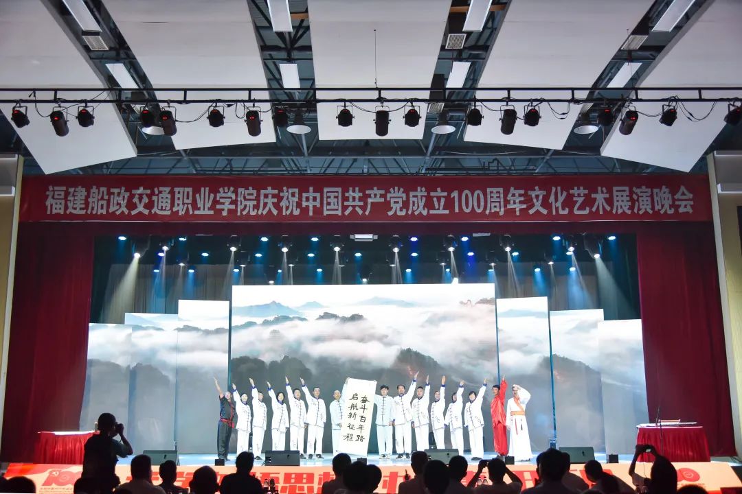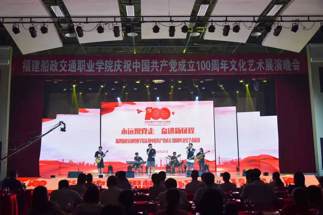 2021年6月27日晚19:00,“永遠跟黨走 奮進新征程”福建船政交通職業(yè)學(xué)院慶祝中國共產(chǎn)黨成立100周年文化藝術(shù)展演晚會在學(xué)院北區(qū)文體中心順利舉辦,學(xué)院黨委書記張海明,學(xué)院黨委副書記、院長陳錦輝,學(xué)院黨委副書記陳宜大,學(xué)院紀委書記張輝,學(xué)院副院長高汝武、張祖柱、陳艷紅,學(xué)院所有職能部門負責人和二級學(xué)院黨政負責人,閩清職專、合作企業(yè)、共建單位代表,學(xué)院師生等500余名參加并觀看了本次晚會。本次晚會采用線上線下同步觀看,線上觀看人次達到8.23萬。