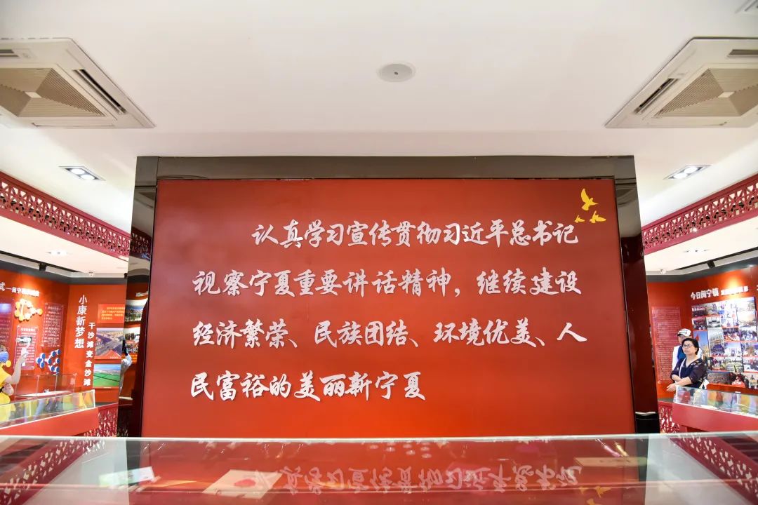 走進(jìn)閩寧鎮(zhèn)鎮(zhèn)史館,實(shí)踐團(tuán)成員觀看了閩寧攜手筑新夢(mèng)主題教育和相關(guān)歷史圖片,共同回顧閩寧鎮(zhèn)移民搬遷、艱苦創(chuàng)業(yè)的艱辛歷程,重溫習(xí)近平總書(shū)記視察閩寧鎮(zhèn)時(shí),“閩寧鎮(zhèn)從當(dāng)時(shí)的干沙灘變成了今天的金沙灘”的講話精神。