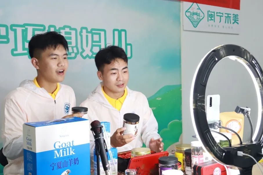 我院社會(huì)實(shí)踐團(tuán)與寧夏職業(yè)技術(shù)學(xué)院實(shí)踐團(tuán)在銀川市閩寧禾美電商扶貧車間共同開(kāi)展“直播助農(nóng)促發(fā)展,鄉(xiāng)村振興青春行”直播帶貨活動(dòng),推廣寧夏特色農(nóng)產(chǎn)品,助力鄉(xiāng)村振興??焓帧伴}寧巧媳婦”直播間開(kāi)播不到一小時(shí)就獲得4.4萬(wàn)點(diǎn)贊數(shù),閩寧兩地團(tuán)青高頻互動(dòng),并取得同時(shí)段寧夏第二名的好成績(jī)。這對(duì)于第一次嘗試直播助農(nóng)的學(xué)生們來(lái)說(shuō),實(shí)屬不易。