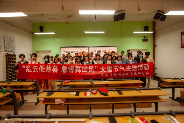 大雪,是二十四節(jié)氣中的第二十一個(gè)節(jié)氣,時(shí)間是公歷每年的12月7日或8日,民間有“小雪腌菜,大雪腌肉”的風(fēng)俗。在中國(guó)人的生活中,雪不僅代表了“瑞雪兆豐年”,還有“風(fēng)起,雪飛炎海變清涼”的風(fēng)雅,更有“北國(guó)風(fēng)光,千里冰封,萬里雪飄”的豪邁!為弘揚(yáng)節(jié)氣文化、漢服文化,社團(tuán)開展大雪節(jié)氣主題活動(dòng),同學(xué)們通過“雪之飛花令”、投壺和漢服走秀等形式,讓更多的青年學(xué)生充分感受傳統(tǒng)文化的魅力,增強(qiáng)學(xué)生們的文化自信。