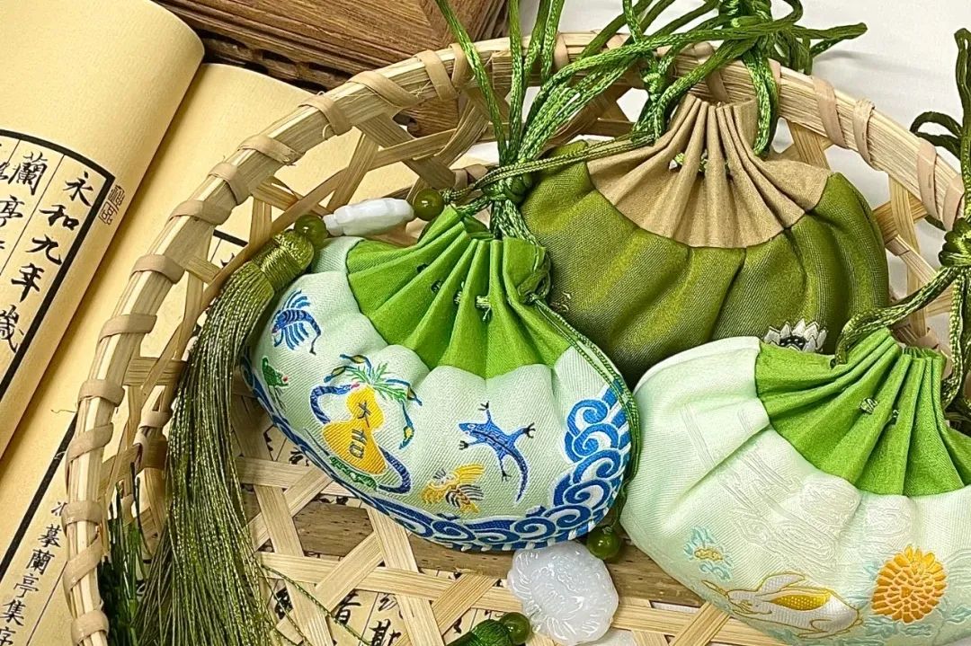 端午節(jié)香包又叫香袋、香囊、荷包等,有用五色絲線纏成的,內裝用中草藥以及香料,是端午節(jié)特有的民間藝品。