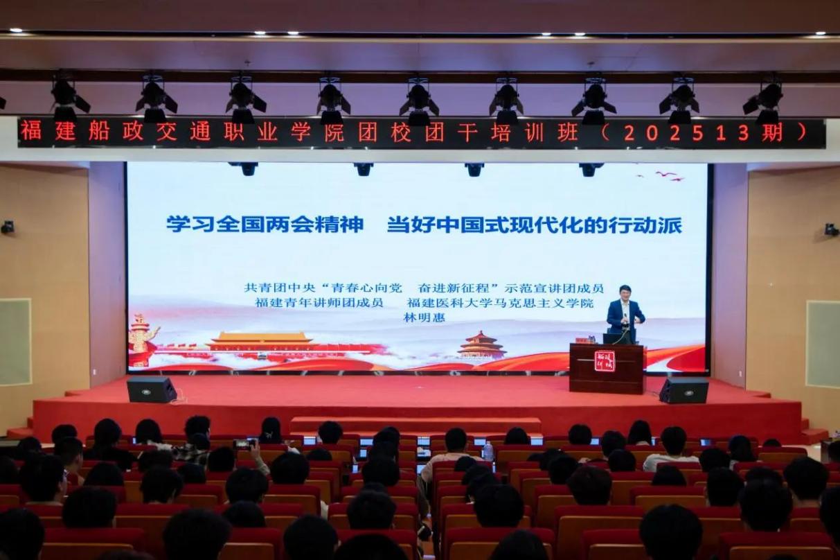 4月9日,共青團(tuán)中央“青春心向黨 ,奮進(jìn)新征程”示范宣講團(tuán)成員、福建青年講師團(tuán)成員、福建醫(yī)科大學(xué)馬克思主義學(xué)院副教授林明惠老師受邀為我院202513期福建船政職業(yè)學(xué)院團(tuán)校團(tuán)干培訓(xùn)班作專題講座-《學(xué)習(xí)全國(guó)兩會(huì)精神,當(dāng)好中國(guó)式現(xiàn)代化的行動(dòng)派》,202513期團(tuán)校團(tuán)干培訓(xùn)班全體成員參與。
