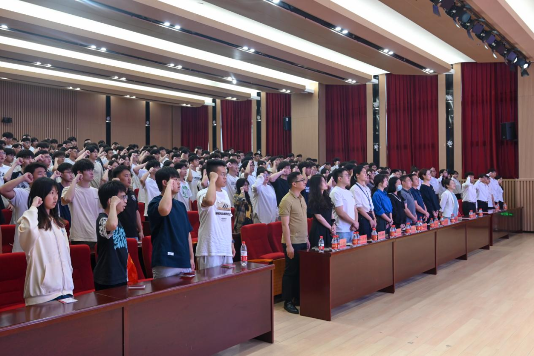 在學(xué)院團(tuán)委學(xué)生兼職副書記夏昊城同學(xué)的領(lǐng)誓下,新團(tuán)員們高舉右拳莊嚴(yán)宣誓,錚錚誓言在會場回蕩。這誓言將化作前行動力,激勵新團(tuán)員們不忘初心,踐行承諾。