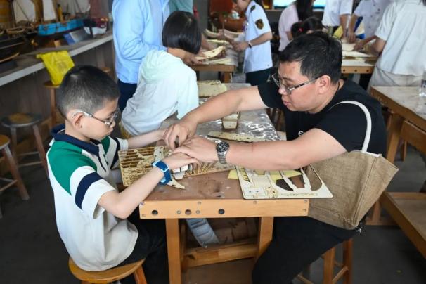 在職業(yè)教育周之際,我院開展職業(yè)啟蒙活動,在本周六我們迎來了倉山團區(qū)委中小學(xué)生與家長們,他們在志愿者的帶領(lǐng)下參觀了航海實訓(xùn)基地、航空實訓(xùn)基地以及安全實訓(xùn)基地,親身感受各專業(yè)領(lǐng)域的特色魅力與獨特氛圍。隨后,他們來到我院創(chuàng)研工坊(心瀾船社),親手制作輪船模型,在實操過程中進一步加深對專業(yè)知識的理解。本次活動通過理論與實踐相結(jié)合的方式,讓學(xué)生們在沉浸式體驗中深入領(lǐng)略現(xiàn)代職業(yè)教育的意義。