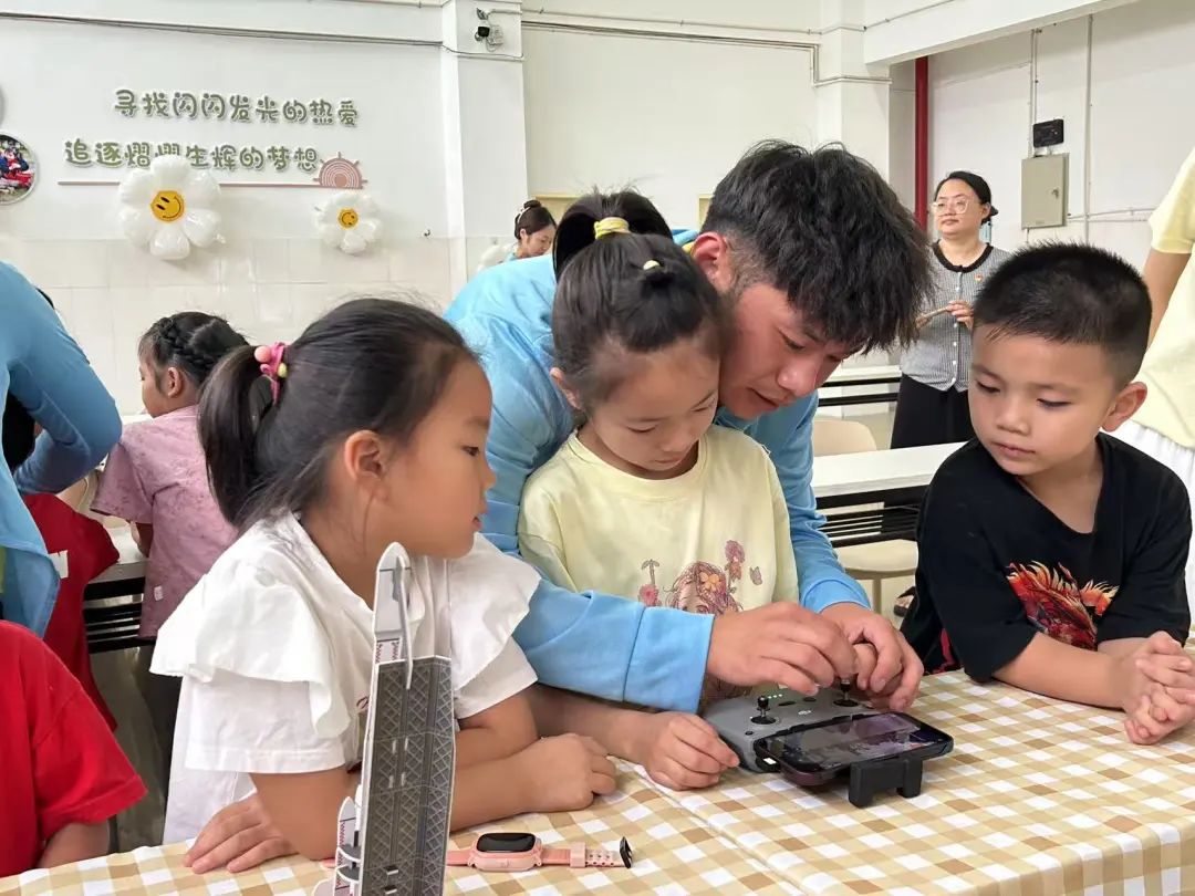鄉(xiāng)村振興,教育筑基?!八{(lán)天禮儀志愿服務(wù)隊(duì)”深知,航空夢(mèng)的種子,要在童年土壤里早早播撒。隊(duì)員們提前籌備,將已學(xué)到的航空知識(shí)整理為童趣故事;精心挑選安全且可拆解的航空模型拼圖,反復(fù)調(diào)試無人機(jī)飛行方案,只為給孩子們最生動(dòng)的航空課堂。