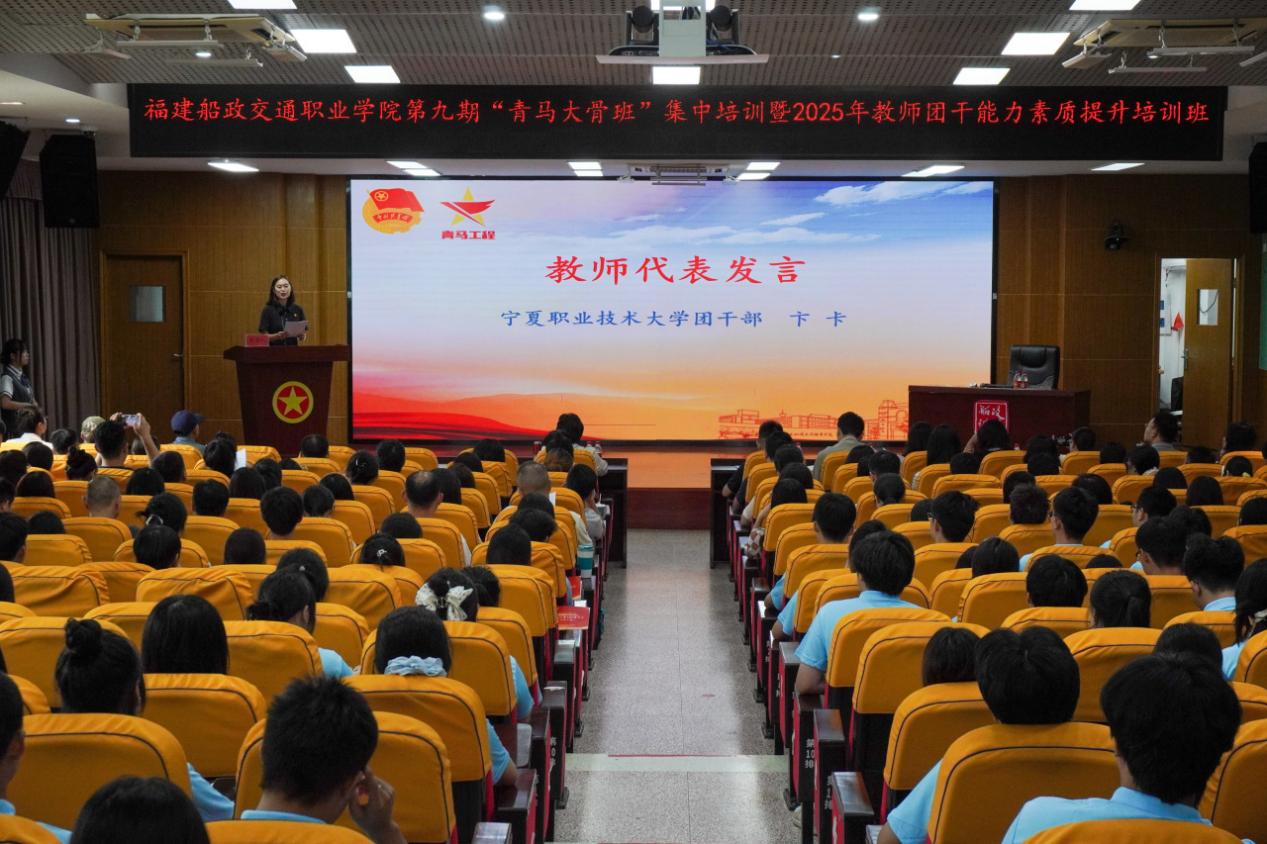 2025年7月22日上午,福建船政交通職業(yè)學(xué)院2025年教師團(tuán)干能力素質(zhì)提升培訓(xùn)班開班儀式在福道園行政樓六樓學(xué)術(shù)報告廳舉行,開班儀式由學(xué)院團(tuán)委書記陳慧主持,學(xué)院黨委副書記張輝致辭,寧夏職業(yè)技術(shù)大學(xué)卞卡老師代表教師團(tuán)干發(fā)言。