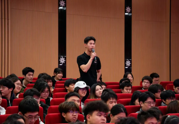 活動在同學們熱烈的掌聲中拉開帷幕。黃芊芊以“拼搏見證夢想”為主題,娓娓道來自己從晉江少體校起步,歷經(jīng)市隊、省隊,直至入選國家隊的成長軌跡。面對傷病與低谷,她坦言“再堅持一下”的信念是關(guān)鍵;談及天賦、努力與機遇,她真誠分享:“天賦是起點,努力是過程,而機遇,永遠青睞有準備的人?!睒銓嵲捳Z中蘊含的力量,深深觸動了在場每一位船政學子。
