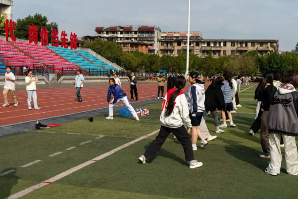 移步青春田徑場,活動進入最“燃”環(huán)節(jié)!黃芊芊化身臨時教練,教授同學們科學的熱身動作,細致講解動作要領(lǐng)。同學們緊跟冠軍的節(jié)奏,親身感受體育的活力與嚴謹。
