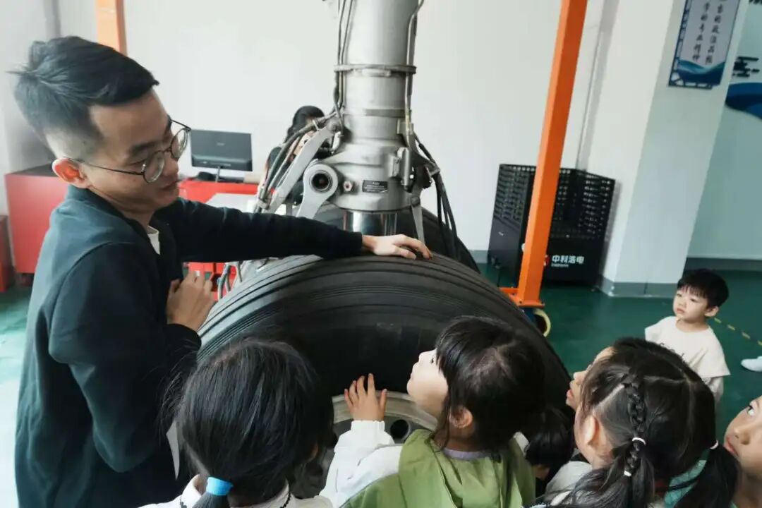 航空實(shí)訓(xùn)基地內(nèi),通用航空學(xué)院教師現(xiàn)場(chǎng)講解,家長(zhǎng)和孩子認(rèn)真聆聽,初步明晰飛機(jī)維修崗位的職業(yè)屬性與技術(shù)標(biāo)準(zhǔn)。在老師的細(xì)致指導(dǎo)下,家長(zhǎng)與孩子共同參與維修實(shí)踐操作,完成相關(guān)工序,直觀體驗(yàn)飛機(jī)維修工作的基本流程。