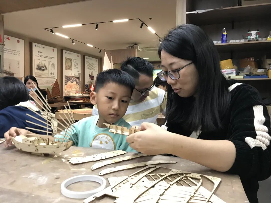 心瀾船社內(nèi),蒼霞社區(qū)的家長(zhǎng)和孩子們?cè)趯I(yè)老師指導(dǎo)下,專注投入船模制作。從木材加工起步,經(jīng)切割、拼接等精細(xì)步驟,逐步搭建船模雛形。老師細(xì)致講解龍骨搭建、船帆固定等制作要點(diǎn),讓孩子在實(shí)踐中感知造船工藝的精妙,大家相互協(xié)作、共克難題,現(xiàn)場(chǎng)氛圍熱烈。船模作品的完成,既展現(xiàn)了協(xié)作的實(shí)操能力,也為孩子們的探索之路揚(yáng)起了新的風(fēng)帆。