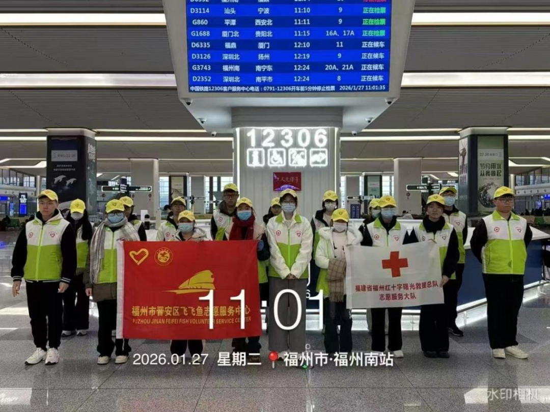 寒假期間,同學們加入福州市晉安區(qū)飛飛魚志愿服務中心,投身車站春運志愿服務,以青春力量守護旅客出行。在車站各崗位上,同學們化身“出行導航員”,為旅客提供專業(yè)的路線指引;擔任“安全守護者”,在自動扶梯旁幫扶老人、照看孩童,筑牢出行安全屏障。
