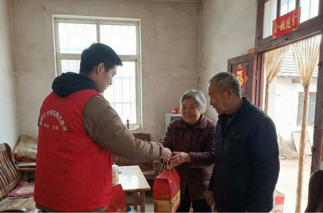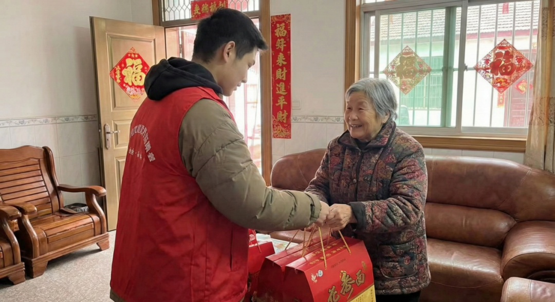 隨后,同學們帶著愛心物資走進社區(qū)長輩家中開展慰問。大家與老人拉家常、聽新春往事,細致詢問老人的身體狀況與生活需求,叮囑老人注意防寒保暖。一份份新春禮盒,一聲聲暖心叮囑,讓冬日小屋滿溢年味與溫情。從物資整理到入戶慰問,同學們用雙手傳遞新春祝福,用腳步丈量社區(qū)溫度,讓青春力量為社區(qū)新春增添溫暖色彩。