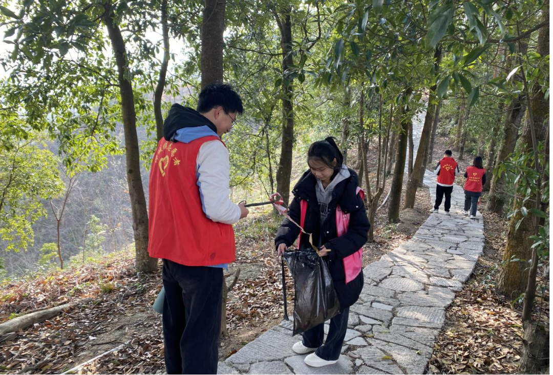 在福建省福州市永泰縣樟城鎮(zhèn)北門社區(qū)的志愿服務中,同學們走進山林步道,開展環(huán)境清潔行動。志愿者們手持工具,細致清理步道落葉、石縫中的垃圾,彎腰撿拾的身影成為山林間一道動人的風景。