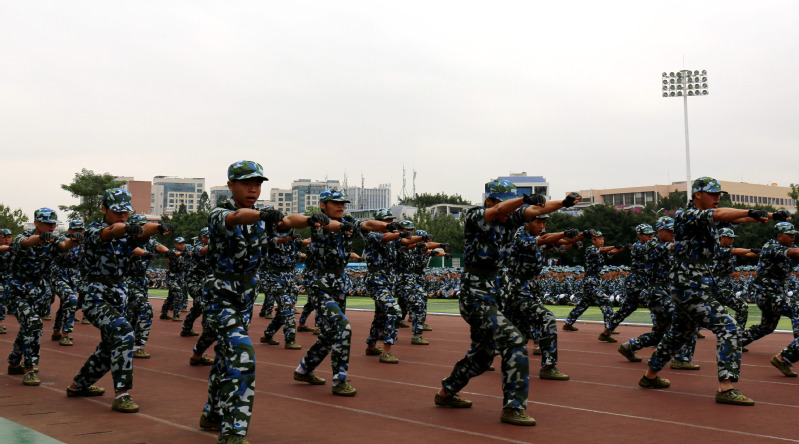 上午10時,2018級4516名學(xué)生身著軍訓(xùn)服裝,在軍訓(xùn)旗的引領(lǐng)下,踏著分列式進(jìn)行曲的鼓點(diǎn),步伐整齊、精神高昂、口號響亮地走向主席臺接受領(lǐng)導(dǎo)來賓的檢閱,緊接著,進(jìn)行了擒敵拳和單個軍人隊(duì)列動作表演。同學(xué)們動作規(guī)范、英勇果敢,贏得了全場的陣陣掌聲。