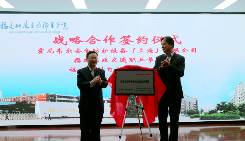 霍尼韋爾安全產(chǎn)品中國區(qū)副總經(jīng)理胡永鑫、福州派科自動(dòng)化科技有限公司總經(jīng)理陸文欽與安全技術(shù)與環(huán)境工程系系主任鄭雪琴進(jìn)行現(xiàn)場(chǎng)簽約。福建船政交通職業(yè)學(xué)院院長陳錦輝分別與福州派科自動(dòng)化科技有限公司總經(jīng)理陸文欽、霍尼韋爾安全產(chǎn)品中國區(qū)副總經(jīng)理胡永鑫舉行了安全防護(hù)裝備捐贈(zèng)儀式與安全防護(hù)裝備校企共建實(shí)訓(xùn)基地揭牌儀式。