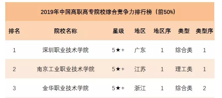 附:2019年中國高職高專院校綜合競爭力排行榜http://www.nseac.com/html/263/681844.html