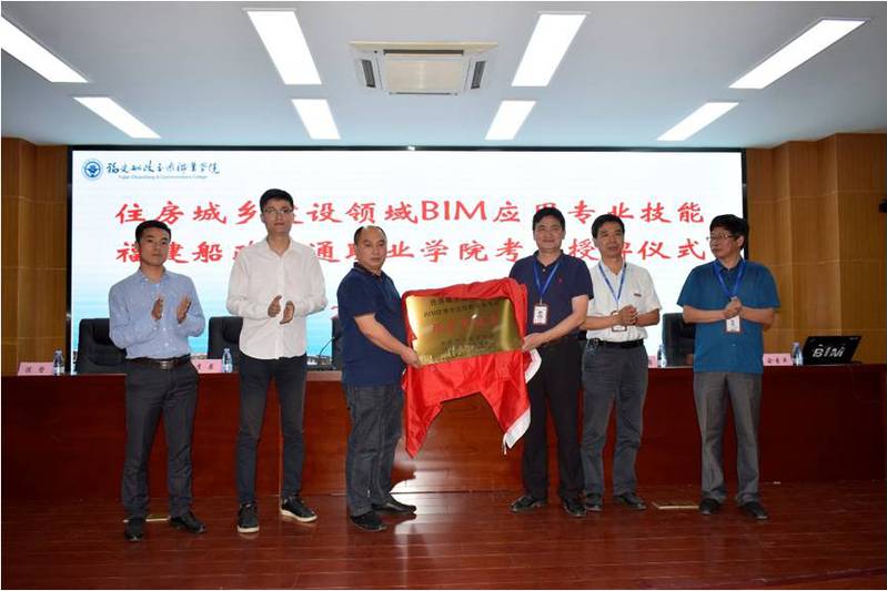 福建船政交通職業(yè)學院迎來了“住房城鄉(xiāng)建設(shè)領(lǐng)域BIM應(yīng)用技能考點”的落戶,授牌儀式于6月10日在1號樓學術(shù)報告廳舉行,由建筑工程系主任俞素平教授主持,中國建設(shè)教育協(xié)會福建省BIM考評管理中心余金華主任、福建船政交通職業(yè)學院高汝武副院長分別在會上做了講話,共同進行了揭牌。